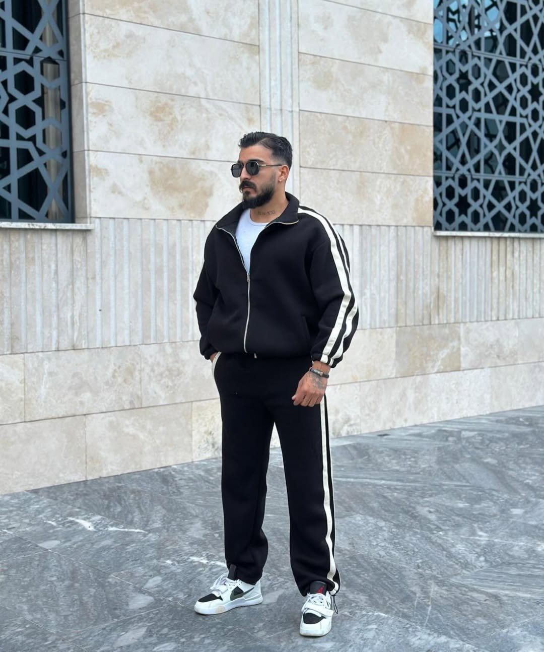 Düz çizgili bol kesim eşofman takımı