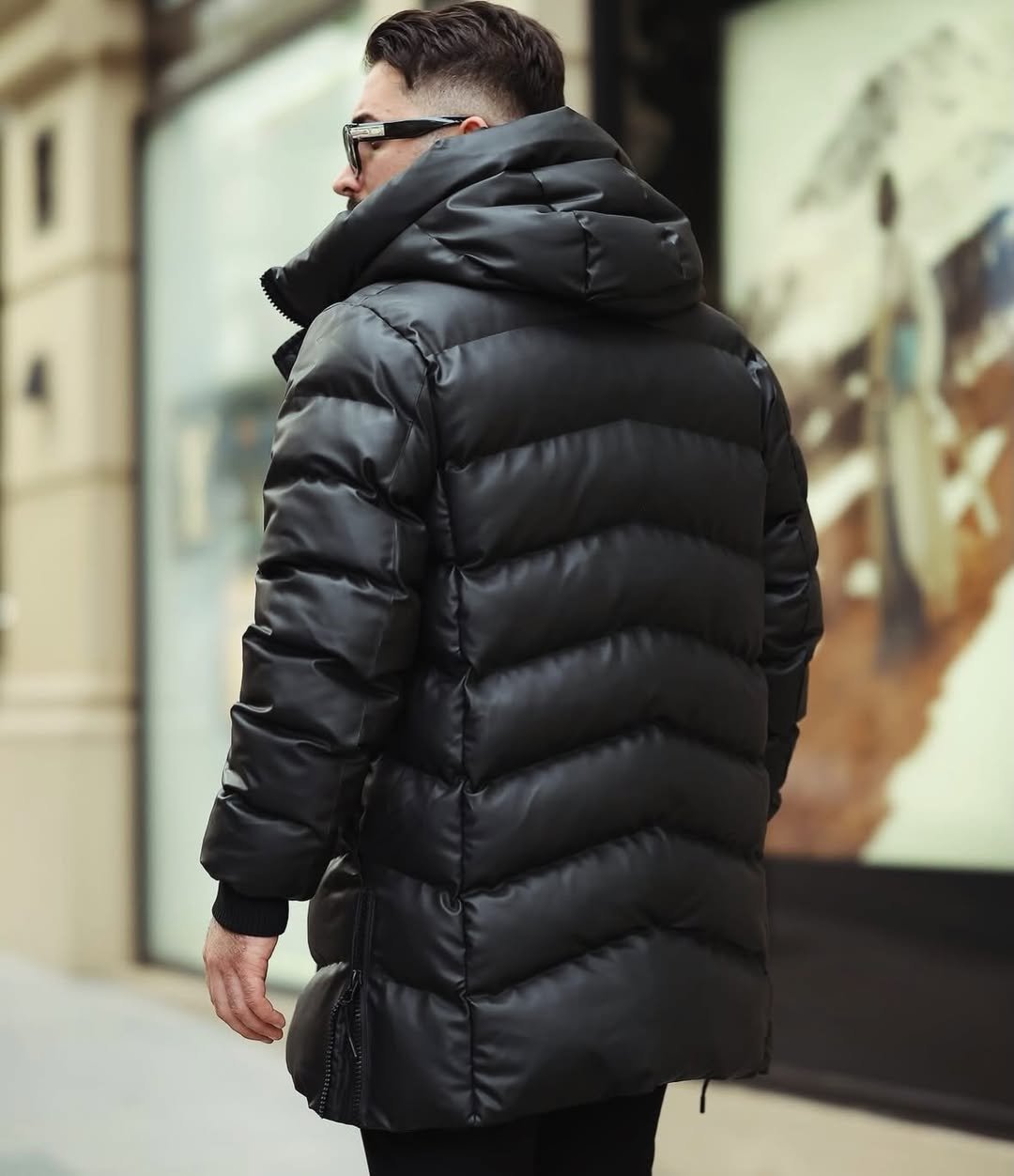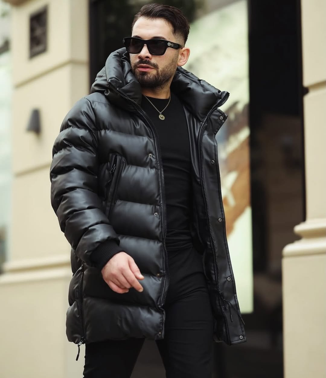 / Uzun Deri Kumaş Mont